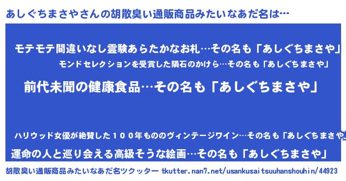 | 意味不明あだ名 | 『永久保存あしぐちまさや』 |
