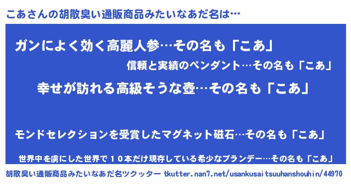 | 意味不明あだ名 | 『こあフォーエバー』『自称こあ』 |