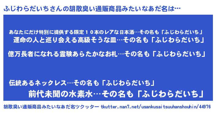 | ヘコむあだ名 | 『ふじっふぃ~』『ふじわらだいち(笑)』 |