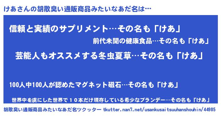 | 意味不明あだ名 | 『自称けあ』『とにかく怪しいけあ』 |