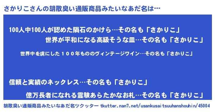 | 意味不明あだ名 | 『住所不定無職さかりこ(2歳)』 |