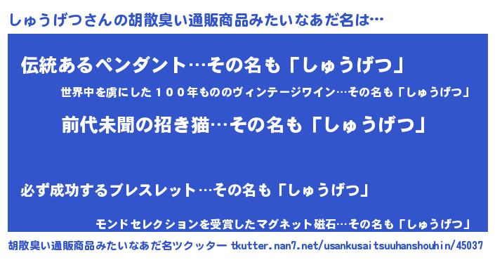 | ヘコむあだ名 | 『しゅうげつ(笑)』『しゅっぺ』 |