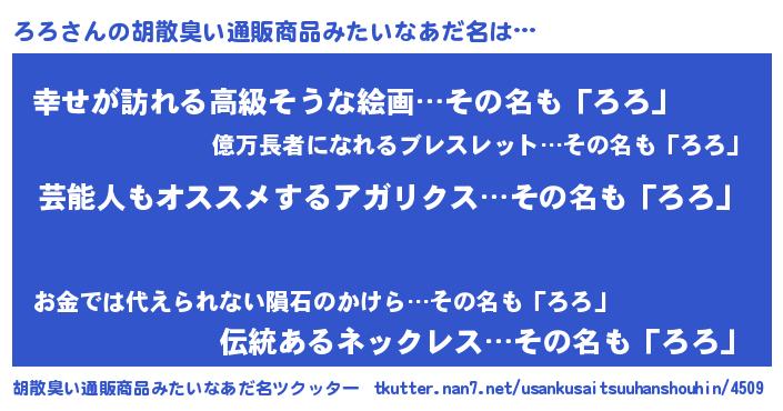 | 意味不明あだ名 | 『自称ろろ』『ろろフォーエバー』 |