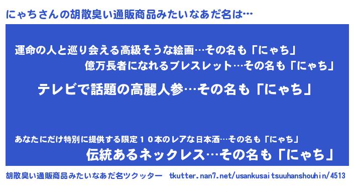 | 欧米人風あだ名 | 『ケンブリッジにゃち』『ウサインにゃち』 |