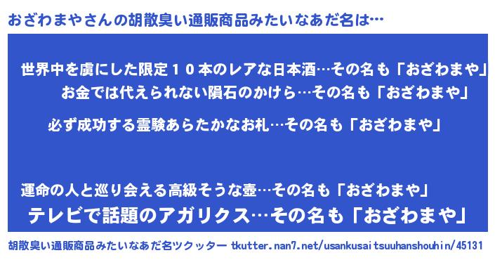 | 伝説のあだ名 | 『伝説のスナイパーおざわまや』 |