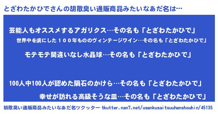 | 男性向けラノベタイトル風あだ名 | 『とざわたかひでの憂鬱』 |