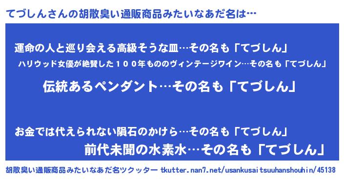 | ヘコむあだ名 | 『てづぷりん』『つくし』『てづにー』 |