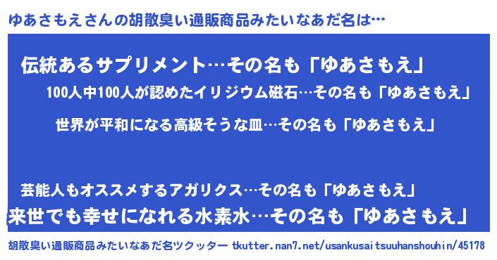| 男性向けラノベタイトル風あだ名 | 『転生したらゆあさもえだった件』 |
