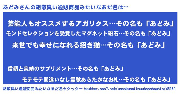 | 男性向けラノベタイトル風あだ名 | 『あどみという概念が存在しない退屈な世界 』 |