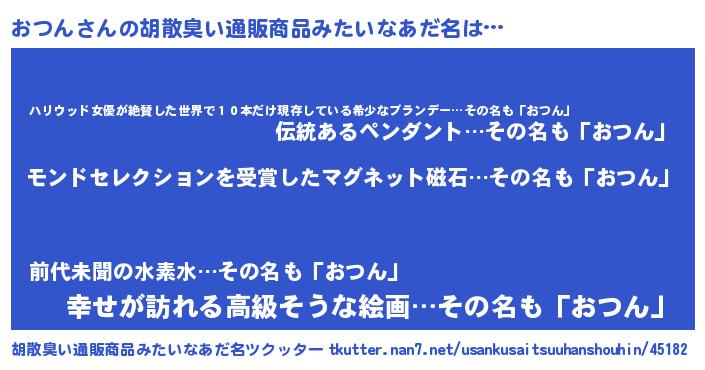 | 女子向けラノベタイトル風あだ名 | 『死神おつんの再婚』『おつん様がみてる』 |