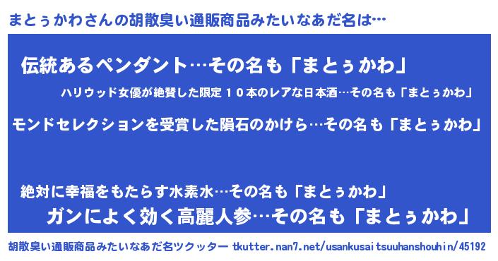 | ヘコむあだ名 | 『まとっぺ』『まとぅかわ(苦笑)』 |
