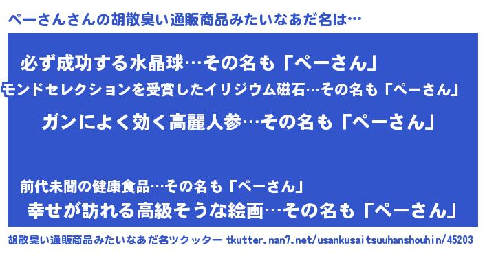 | 意味不明あだ名 | 『自称ぺーさん』『ペロリンぺーさん』 |