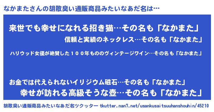 | 意味不明あだ名 | 『住所不定無職なかまた(6歳)』 |