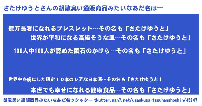 | ヘコむあだ名 | 『さたっふぃ~』『さたけゆうと(笑)』 |