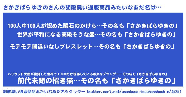 | ヘコむあだ名 | 『さかにー』『さかきばらゆきの(遠い目)』 |