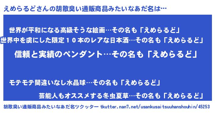 | 伝説のあだ名 | 『孤高の遊び人えめらるど』 |