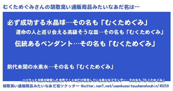 | 欧米人風あだ名 | 『ウサインむくためぐみ』 |