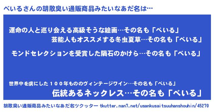 | 意味不明あだ名 | 『眠気覚ましガムべいる味』『自称べいる』 |