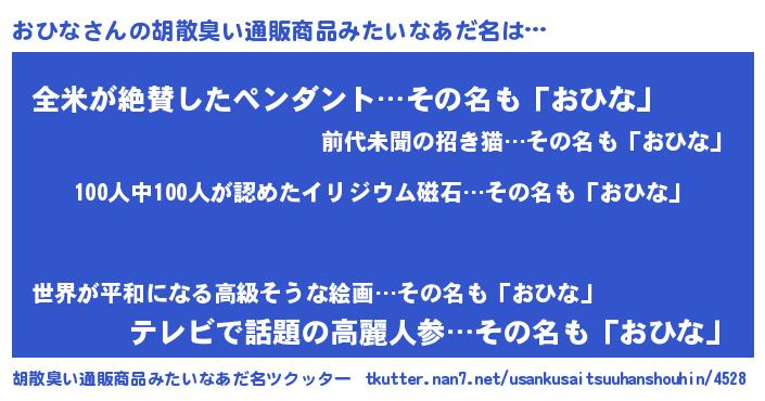 | 意味不明あだ名 | 『眠気覚ましガムおひな味』『自称おひな』 |