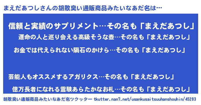 | 女子向けラノベタイトル風あだ名 | 『まえだあつし恋絵巻』 |