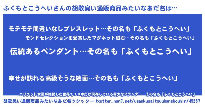 | ピコ太郎風あだ名 | 『フク十郎』『フコ次郎』『フフ太郎』 |