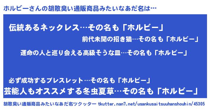 | 意味不明あだ名 | 『ホルビーフォーエバー』『自称ホルビー』 |