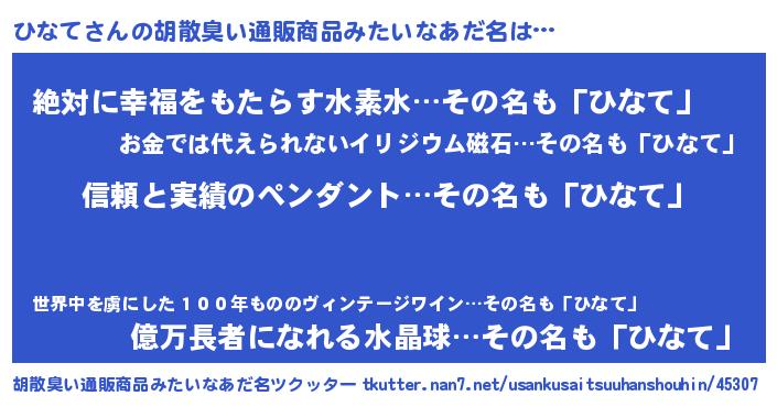 | 意味不明あだ名 | 『とにかく怪しいひなて』 |