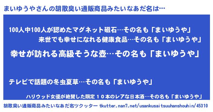 | 伝説のあだ名 | 『秘められし忍者まいゆうや』 |