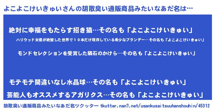 | ヒーロー風カッコイイあだ名 | 『天空の使者よこよこけいきゅい』 |