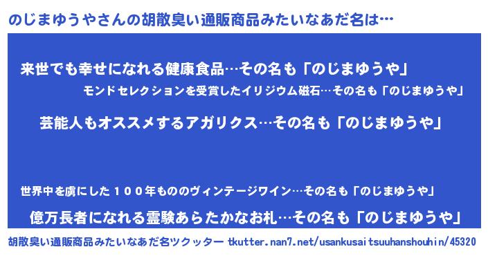 | 意味不明あだ名 | 『自称のじまゆうや』 |