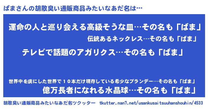 ばまさんの胡散臭い通販商品みたいなあだ名をツクッター!