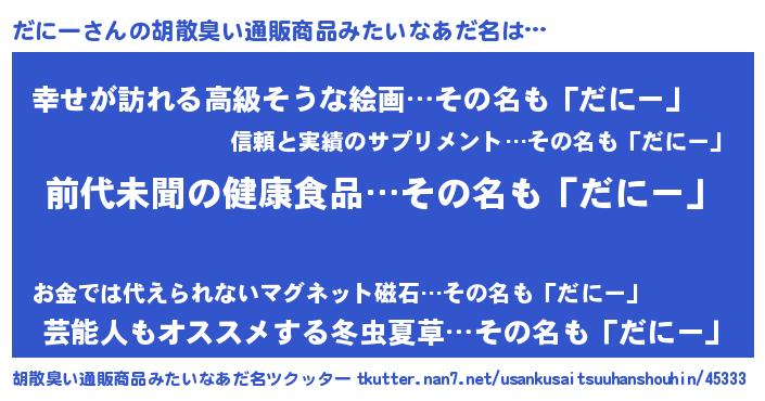 | 意味不明あだ名 | 『永久保存だにー』『だにーフォーエバー』 |