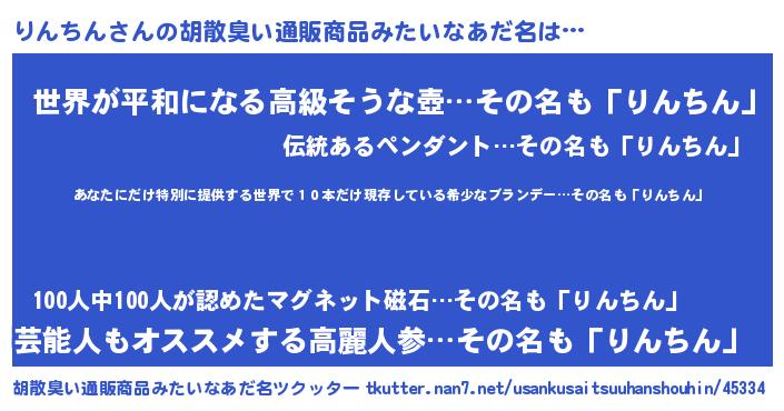| ヘコむあだ名 | 『酢こんぶ』『りん太郎』『りんにー』 |