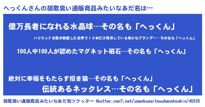 | 意味不明あだ名 | 『眠気覚ましガムへっくん味』 |