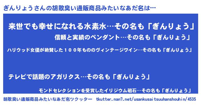 | 意味不明あだ名 | 『めかぶ科ぎんりょう属』 |
