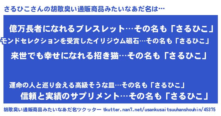 | ヘコむあだ名 | 『さるひこ(笑)』『さるにー』 |