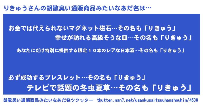 | 意味不明あだ名 | 『住所不定無職りきゅう(50歳)』 |