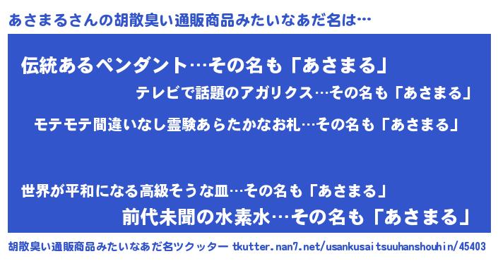 | 欧米人風あだ名 | 『マイケルあさまる』『ウサインあさまる』 |