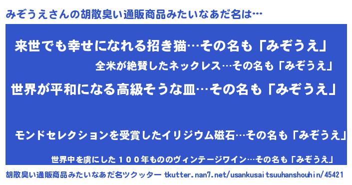 | ヒーロー風カッコイイあだ名 | 『ウルトラみぞうえマン』『ネオミゾウエ』 |