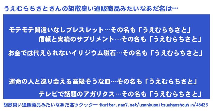 | 意味不明あだ名 | 『眠気覚ましガムうえむらちさと味』 |
