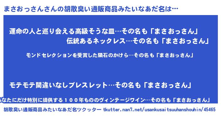 | ヒーロー風カッコイイあだ名 | 『慈愛の使者まさおっさん』 |