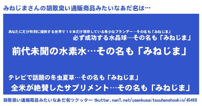 | ヘコむあだ名 | 『みねじま(苦笑)』『みねぷりん』 |