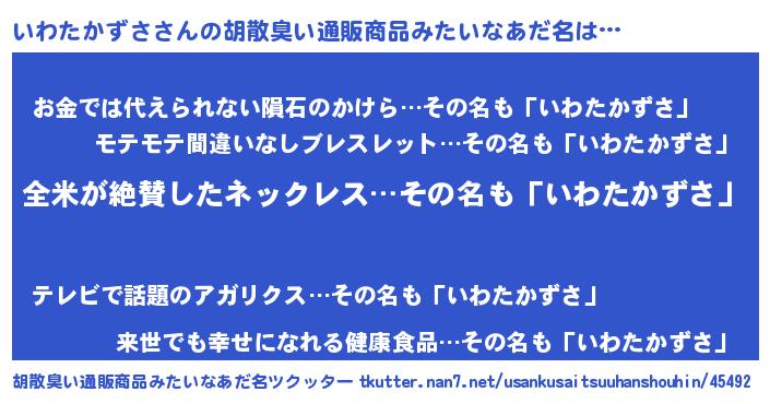 | 意味不明あだ名 | 『とにかく怪しいいわたかずさ』 |