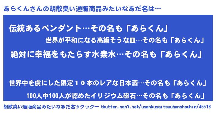 | 意味不明あだ名 | 『永久保存あらくん』 |