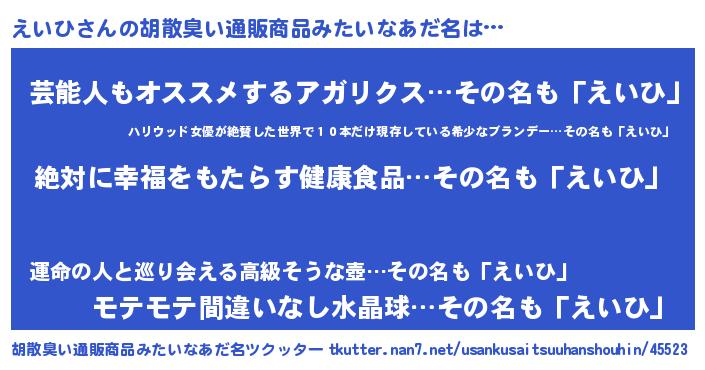 | 意味不明あだ名 | 『永久保存えいひ』『自称えいひ』 |