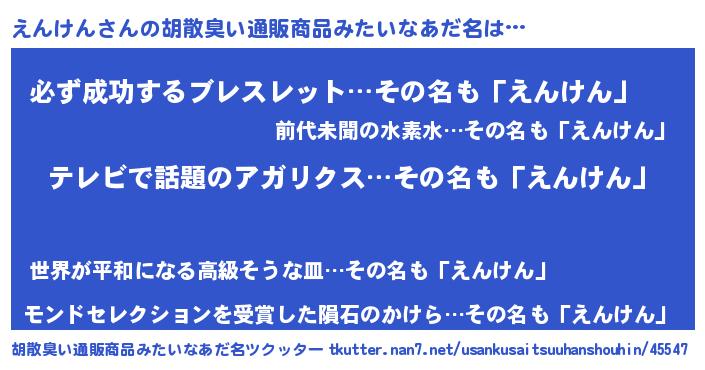 | ヘコむあだ名 | 『えんふぇ~』『えんけん(笑)』 |