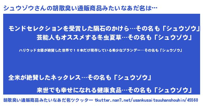 | ヘコむあだ名 | 『シュウゾウ(苦笑)』『シュっちょ』 |