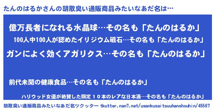 | 意味不明あだ名 | 『自称たんのはるか』 |