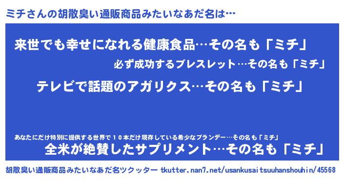 | ヘコむあだ名 | 『ミチ(爆)』『ミチっぺ』『つくし』 |
