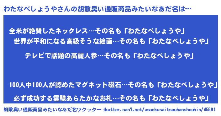 | 肩書あだ名 | 『わたなべしょうや閣下』 |